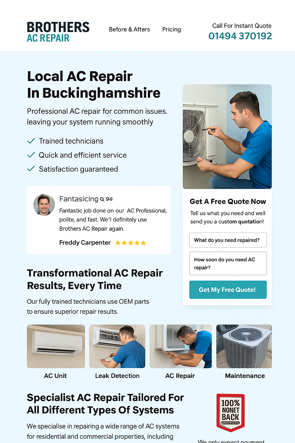 A strong HVAC landing page must convince the customer to take action.